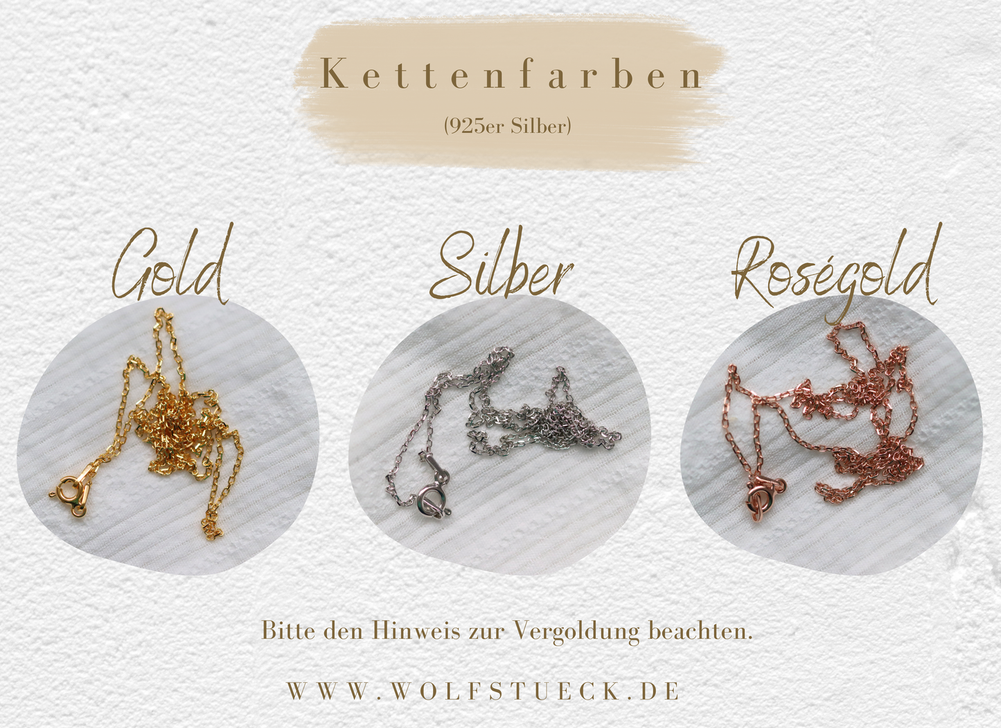 Details: 925 Silber · Roségold: 18k zweifach vergoldet · Gold: 24k zweifach vergoldet · Kettenlänge: 45 cm