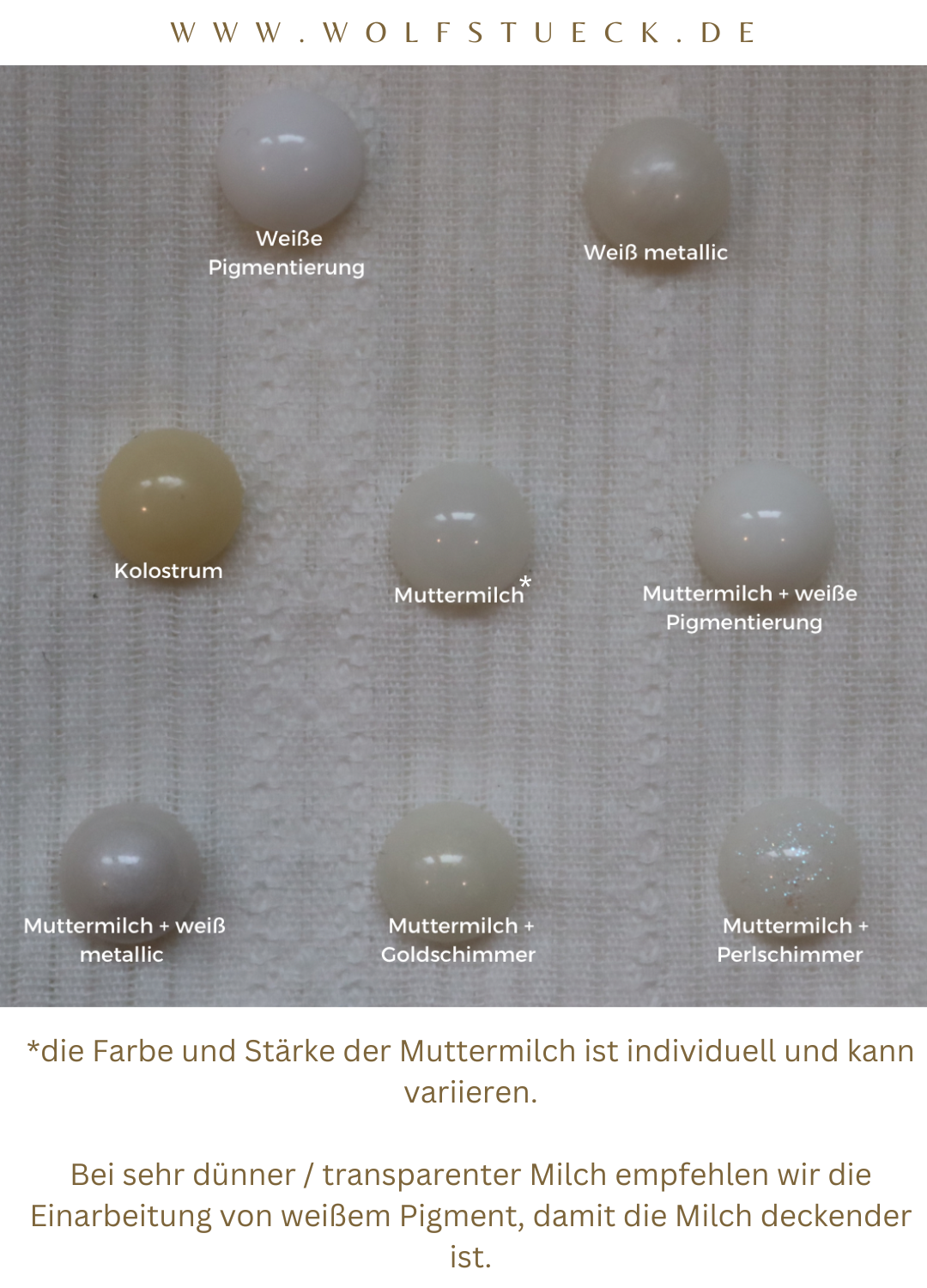 Schmuck mit Muttermilch braucht aufgrund der Konservierung der Milch etwas länger. Hier beträgt die Lieferzeit je nach Design ca. 9-13 Wochen nach Erhalt der Materialien.